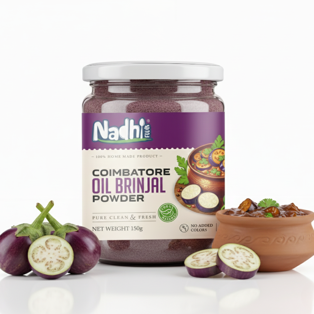 Experience the authentic taste of Coimbatore with our traditional Oil Brinjal Powder. Made from fresh brinjals and carefully selected spices, this unique blend delivers rich aroma and bold flavor. Perfect to mix with hot rice, idli, or dosa, it adds a delicious South Indian touch to your meals.