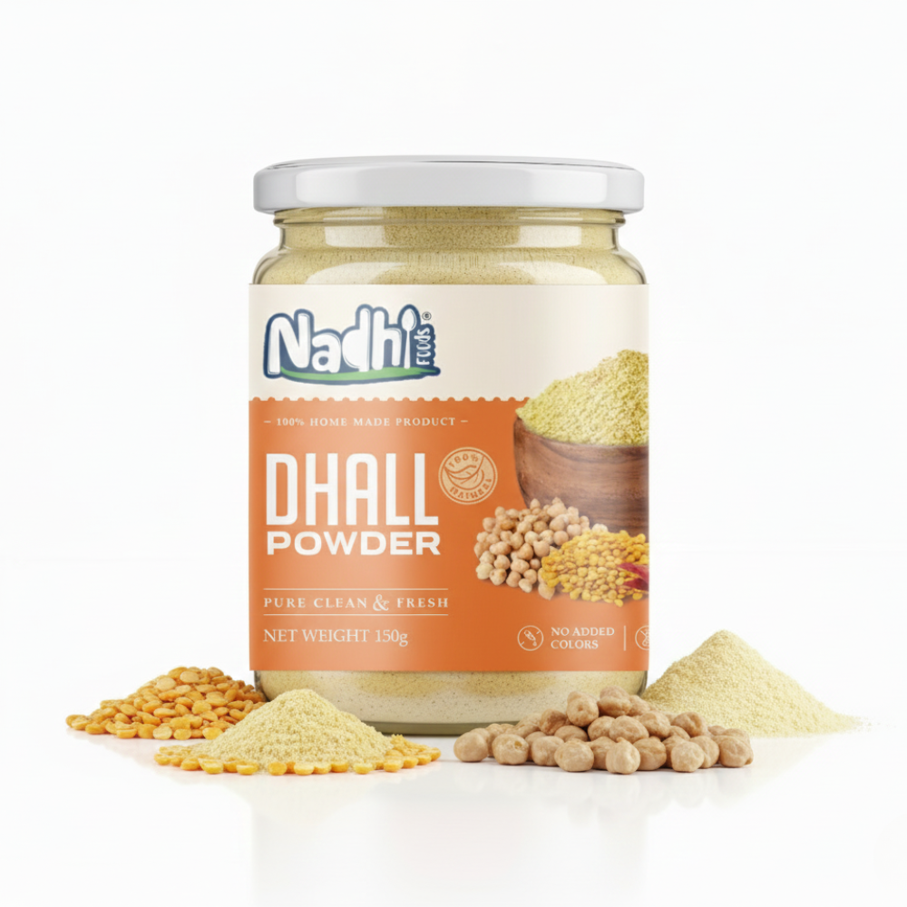 Prepared from premium lentils and spices, our Dal Powder is a protein-rich podi that adds both taste and nutrition to your meals. Ideal to mix with rice and ghee for a quick, wholesome dish.